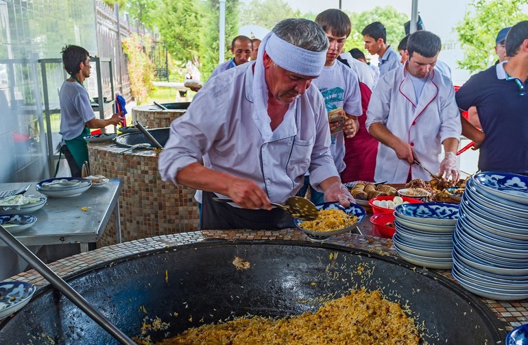 Рождение ребенка отмечается обычно с большим размахом (исходя из финансового положения естественно). Это все равно что, как свадьба) Созываются все родственники и соседи, режут барана и готовят плов большом казане.