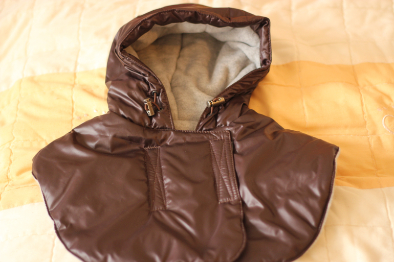 Манишка удлинена спереди для того, чтобы защитить грудь мамы от холода: