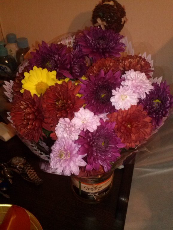 ходили не так давно с мужем в магазин вечером,и там сидела бабуля,продавала цветочки,ну муж решил порадовать меня и купил букетик,так приятно стало