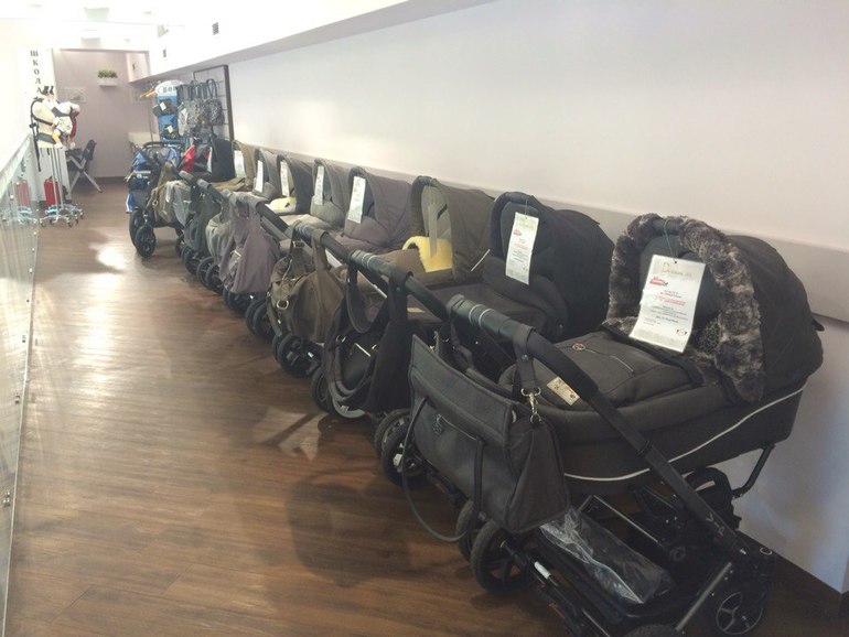 Оптово-розничный склад в Царицыно, там дешево, но по кол-ву штук 20 колясок, не больше. В марьино двухэтажные дочки сыночки, на первом этаже четверть зала под коляски.