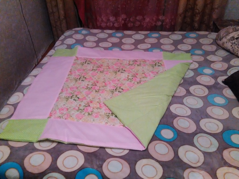 Делала синтепон 100гр, тонкий. И такое одеялко буду использовать или на улицу или в холод дома) для сна в кроватке конечно нужно что то тоненькое и дышащее и хбшное)))