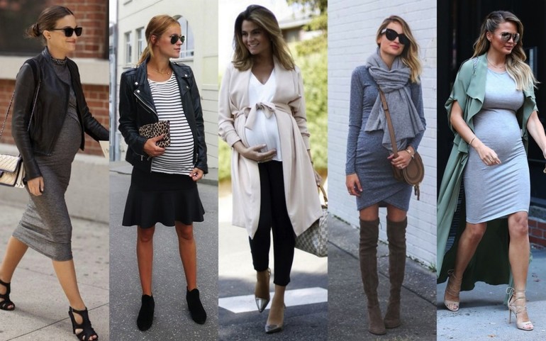 Сколько бы у вас не было джинсов или брюк, платья все равно должны занимать достойное место в вашем гардеробе. Тем более в период беременности платье станет вашим безусловным фаворитом. Избегайте чрезмерно свободных платьев, которые помимо того, что скрывают ваш животик, искажают все пропорции вашей фигуры. Выбирайте модели слегка приталеные из струящихся, но не прозрачных материалов. Очень актуально использование тонкого ремешка прямо под грудью.