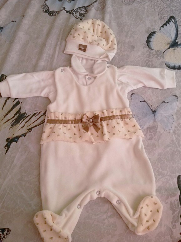 приобрела набор на выписку состоящий из велюрового полукомбинезона,
