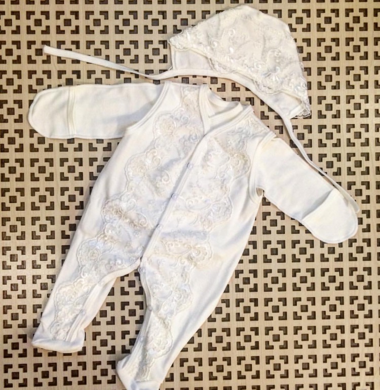 У меня 3 июля, я купила костюм цвета шампань, с рюшами немного, чепчик в комплекте, розовый тонкий плед вязаный. Ещё куплю пеленку однотонную. И все, если будет тепло, то без пелёнки.
