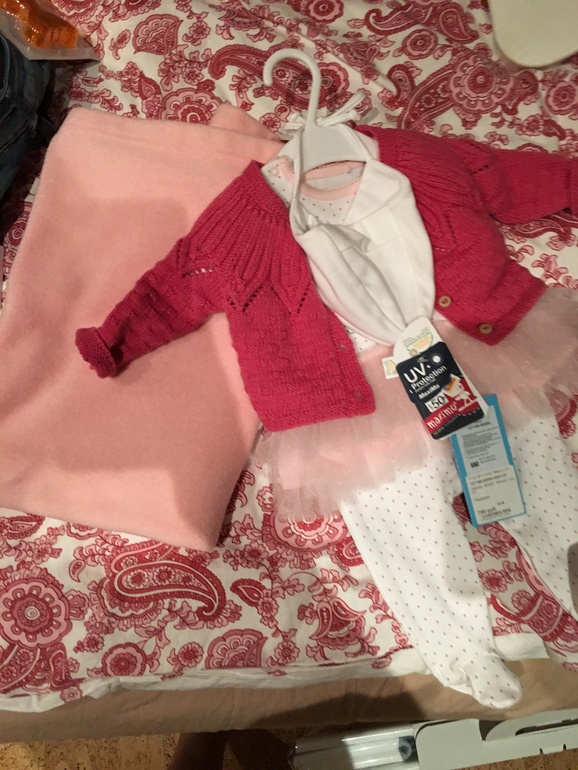 .боди-платье,носочки,шапочка.плед этот тонкий вязаный,если свежо будет в тёплую пеленочку внутрь наверное ...или слип докуплю ...