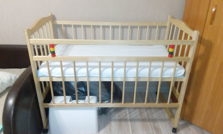 У старшей деревянная кроватка за 5000 с маятником. Пока спит в детской кроватке с нами в комнате, но думаю к новому году закончить детскую комнату и переселить ее туда.