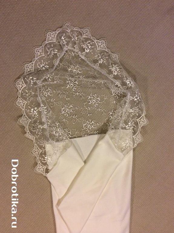 ну если под низ тугую пелёночку- то будет такой вот столбик, роддомовский, сверху уголок, гипюрным краем можно личико прикрыть- мне видится красиво. Но жарко)) Если на момент выписки будет больше + 30 думаю без нижних распашонки с ползунками можно обойтись. Или без пелёнки.