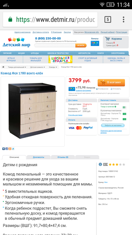 Комод с пеленальным столиком Фея 1780, пр. Россия, тоже в Детском и тоже не собран, на момент покупки стоил 4249 р.