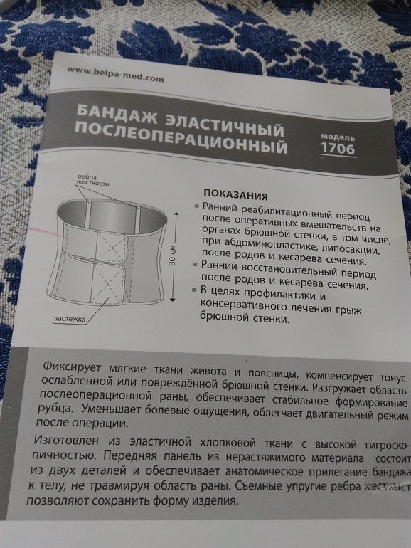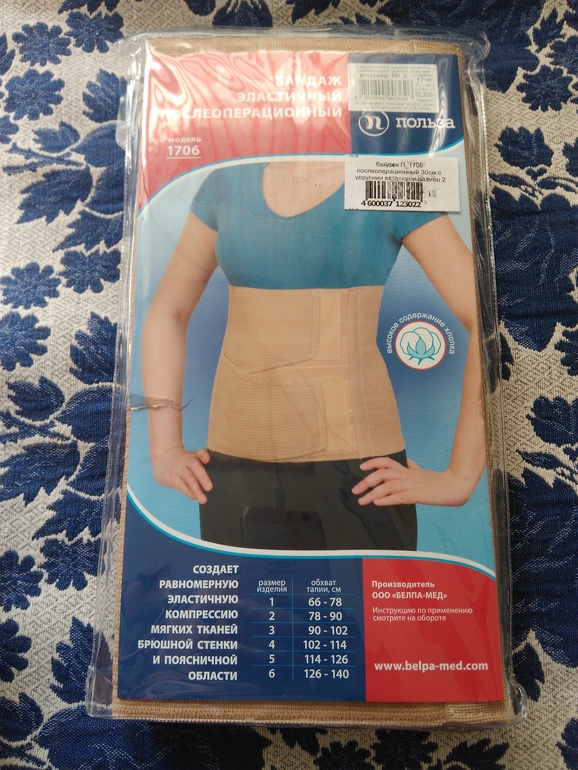 Т.к. у меня будет КС приобрела я себе бандаж Польза Белпа-мед, именно послеоперационный, а не послеродовой, по отзывам он больше подходит после КС, да и консультант в магазине рекомендовала именно такой. Высота 30см, размер #2, на талию 78-90 см, пр. Беларусь, бандаж на липучках с пластиковыми ребрами жёсткости, что бы не сползал, при желании их можно убрать. Смотрела на сайте Доброта.ру - это сеть медицинских магазинов, после поехала в ближайший и там уже купила, цена 1898 р.