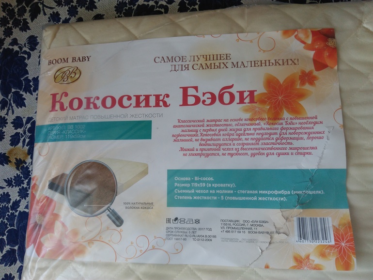 К кроватке прикупили матрац Кокосик бэби 119*59см, пр. Россия, тоже в Детском мире.