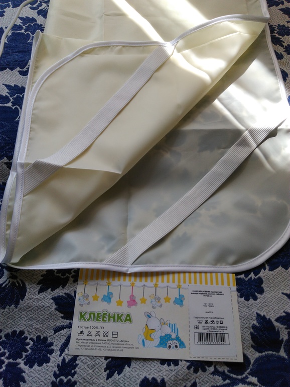 К матрацу взяла клеёнку подкладочную дышащую на резинке 70*120 Leader Kids, пр. Россия, сайт Акушерство, края обработаны хорошо, совершенно не шуршит, цена 145 р.