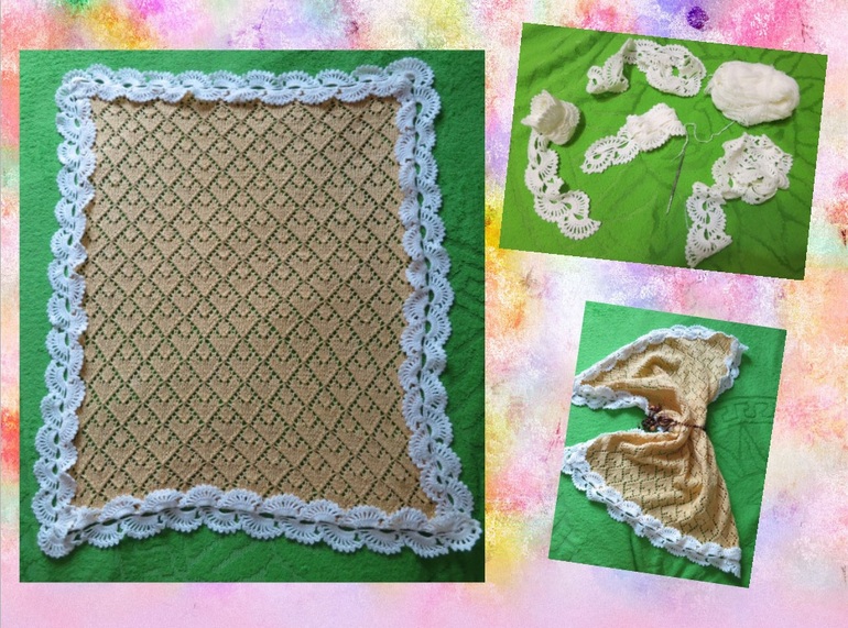 Тут абсолютно ничего сложного. Обыкновенные столбики с накидами. На лето свяжите из хлопка. Вот я такие вязала Плед с сердечками спицами, только кружево крючком. На лето лучше что-то ажурное.