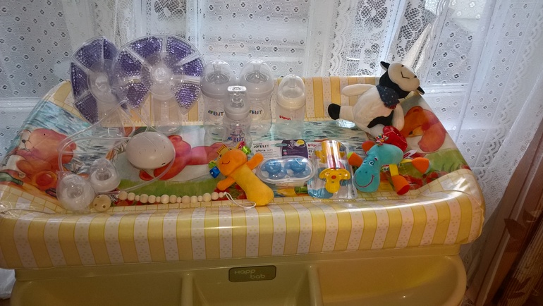 Молокоотсос и Алиэкспресса, по отзывам хороший, мне он нужен чисто подстраховаться, хотела из начально меделу, но вспомнив кормления предыдущих троих детей,эту затею я забросила и купила за 1500р в принципе хороший молокоотсос на две груди, работает от юсб, в комплекте: 2 бутылочки с сосками, накладки на грудь (их можно нагреть под горячей водой и приложить к груди, усиливает отток молока) бутылочки заменю на авент с узким горлышком, одну уже купила. По мелочи игрушки, пустышки, бутылочки.