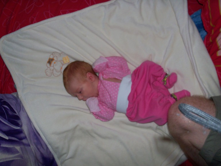 В машине одеяло развернули, дочку в люльку положили-пристегнули, одеялком накрыли (у нас люлька полноценная с авторемнями).