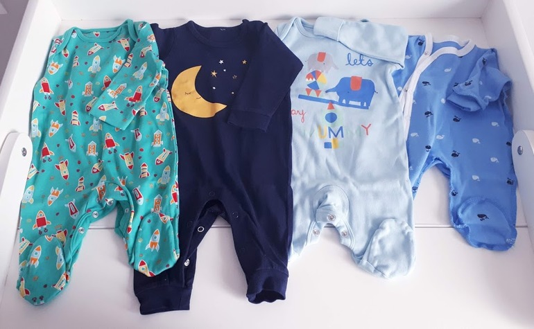 Покупки одежды мы начали во время весеннего отпуска в Европе, откуда решили привезти сувениры для себя из каждой страны, в которую заезжали, в виде первых приобретений для ребенка. Остальное я заказывала в интернет-магазинах (mothercare, h&m, wildberries и akusherstvo). В живую в магазинах не стала ходить, выбирать, т.к. у меня однозначно было бы много лишнего по итогу (там "ой крутой", здесь "ой какая прелесть", в следующем "ну эта милашесть мне точно нужна", а приходишь домой и видишь 10 слипов одного размера... ).