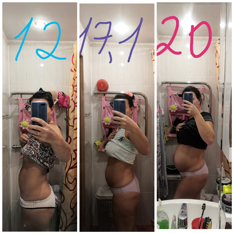 Экватор, отчетыВот и пролетели 20 неделеке. Просто молниеносно, я ничего и понять не успела... До сих пор ловлю себя на мысли... Блин, я что беременная??? До сих пор не привыкла, что скоро будет четвёртый детенок))) Токсикоз закончился в 16-17 недель, сейчас не рвёт, но удовольствия от еды до сих пор не получаю. Хожу легко, пока удаётся скрывать, но вот-вот это будет невозможно. Прибавка, как считаю от своих начальных 68, то сейчас 70 и это +2 кг. Но гиня считает от постановки на учёт в 9 недель, когда был разгар токса, от 65.5 и это 4,5 кг. Это моя первая беременность без гипертонуса, это так круто, а то прошлые Б живот вечно колом был. Шевелюхи чувствую с 17 недель, но до сих пор они очень нежные и глубинные из-за прикрепления по передней стенке. И рост животика, за последние три недельки очень вырос, а вечером ещё больше.