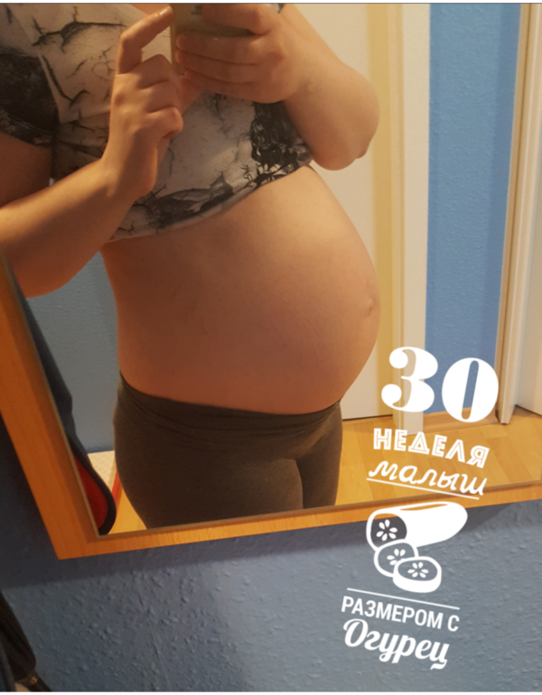 Сейчас удивил меня стикер. Как в 30 недель малыш может быть размером с огурец? Это где такие полуторакилограмовые огурцы водятся? 😁
