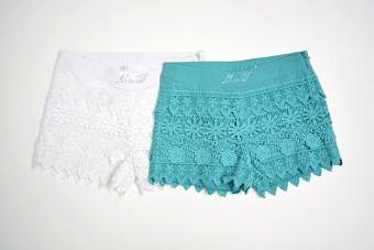 209N Шорты. Модель украшена бусинами и декоративными бантиками.