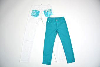 269) Брюки. Модель прямого кроя. Карманы и шлёвки украшены стразами.200N Джинсы. Декоративные элементы на передних карманах.
