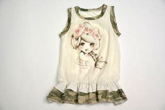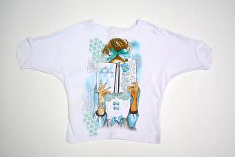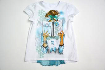 188) Туника+топ. Топ свободного кроя. в нижней части туники изображение девочки и название бренда.