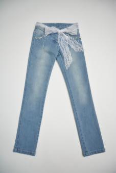 49N Джинсовые брюки. Модель украшена бусинами, стразами и поясом из кружевной ткани.