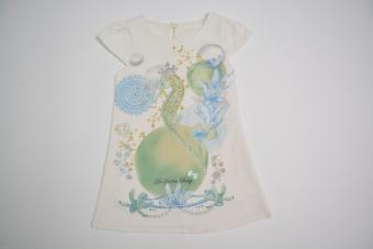 147N Платье. Рукава и юбка изделия выполнены из кружевной ткани. На изделии оригинальный принт с декоративным бантом.