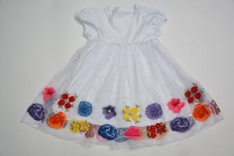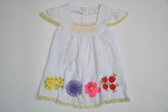 169N Платье. Модель с коротким рукавом и вставкой из резинки на груди. Низ изделия расшит красочными цветами.