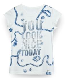 213N Футболка. Модель с коротким рукавом и оригинальным принтом украшенным стразами.