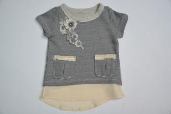 114N Футболка. Модель свободного кроя с накладными карманами и декоративными цветами в верхней части.