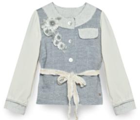 116N Кардиган. Модель с поясом и необработанными краями, в верхней части изделия декоративные цветы. Рукава изделия выполнены из шифоновой ткани.