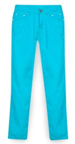 61N Брюки. Модель зауженного кроя. Передняя часть изделия выполнена из узорной ткани. ЦВЕТ: бирюзовый