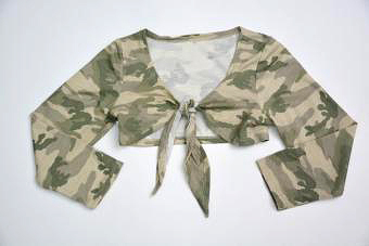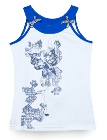 23N Майка. Модель с принтом. Контрастный ворот украшен декоративными бантиками.