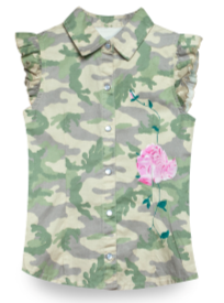 226) Футболка. Модель с оригинальным принтом. Рукава и горловина изделия украшены оборками.