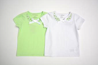 260) Футболка. Модель с коротким рукавом, украшена бантом и декоративными элементами по вороту.