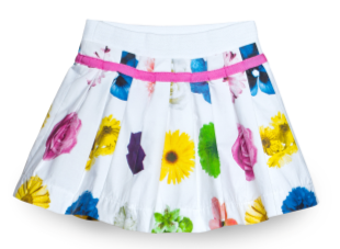 177) Юбка. Модель средней длины, выполнена из узорной ткани. Пояс в виде мягкой резинки украшен декоративным цветком.