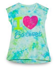 268) Туника. Модель с ассиметричным низом. Принт в виде сердца украшен паетками и бусинами. Небольшие оборки на рукавах.