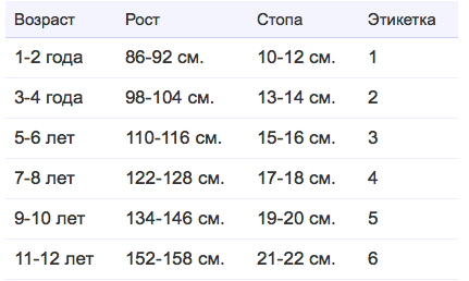 размеры: 1 (86-92), 2 (98-104), 3 (110-116), 4 (122-128), 5 (134-146), 6(152-158)