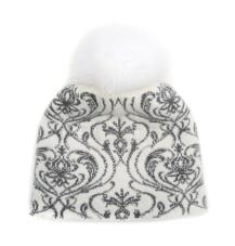 Шапка для девочки молочного цвета с декоративным орнаментом, украшенна стразами, с белым помпоном из натуральногог меха. двойная вязка 65%-шерсть,35%-хлопок