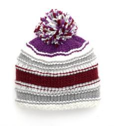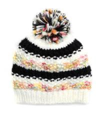 Шапка разноцветная с помпоном из цетных ниток. По периметру модели - 2 полосы черного цвеата. одинарная вязка 65%-хлопок,35%-акрилл