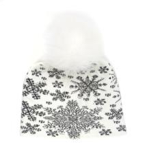 Шапка для девочек молочного цвета с орнаментом в виде снежинок, с помпоном из натурального меха белого цвета. двойная вязка 65%-шерсть,35%-хлопок