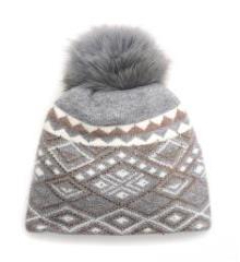 Шапка для девочки серого цвета, с декоративным орнаментом, украшенна стразами, с серым помпоном из натурального меха. двойная вязка 70%-шерсть, 30%-хлопок
