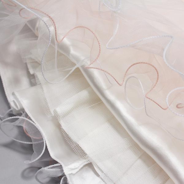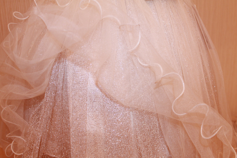 Верх легкая вуаль, под ней золотистая блестящая ткань, несколько подъюбников.