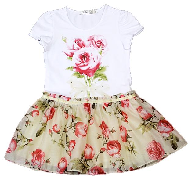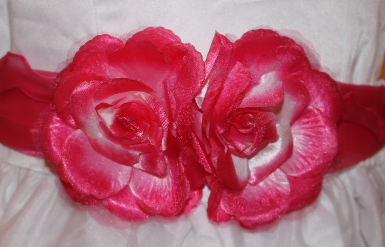 42. Очень нежные платья с лепестками роз внутри юбки и розой на поясе (отстегивается). пояс-бант - 6 ,7лет -2850