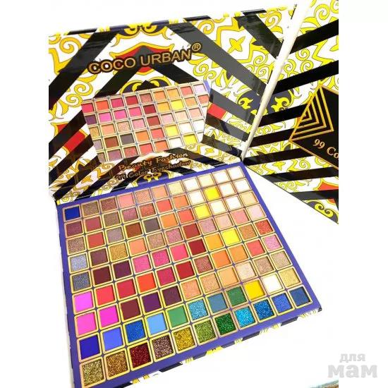 Профессиональная палетка из 99 высоко пигментированных оттенков. Для создания дневных и вечерних образов. Идеально подходит для работы профессионального визажиста и не только. Cупер мягкая и легкая текстура теней, отлично смешиваются между собой, обладают высокой стойкостью.