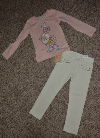 а вот джинсы на два года абсолютно в размер, футболка и кардиган в размер