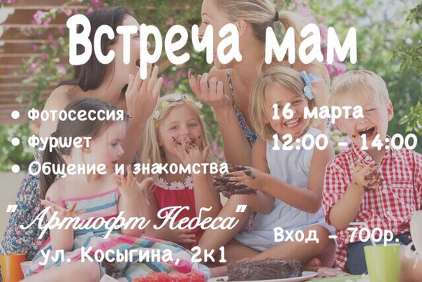 Встреча пройдет в уютном лофте "Артлофт Небеса". В лофте очень тепло, есть все условия пребывания с детьми, а также имеется кухня где можно подогреть ребенку еду.