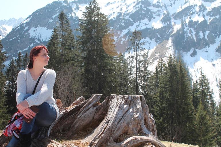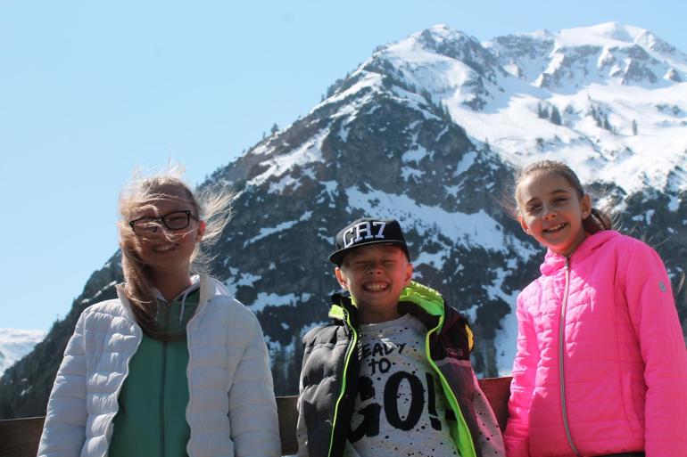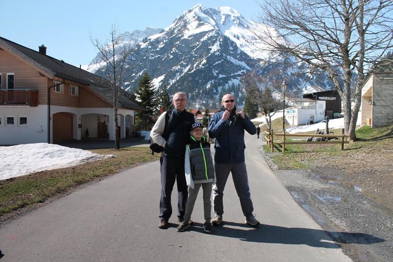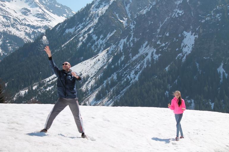 На следующее утро наскоро позавтракав и запаковав несколько бутербродов в дорогу, мы рванули в Австрию. Люди такую дорогу проделали, чтобы побывать в горах. И они их получили..Альпы, свежий воздух, коровы на лугах и как бонус СНЕГ! Абсолютно чистые дорожки, ручьи с талой водой сбегающей с гор, кое где уже распустившимися эдельвейсами и склонами, всё ещё покрытыми снегом. По моему папа 10 летней Даши был рад снегу даже больше, чем сама Даша.