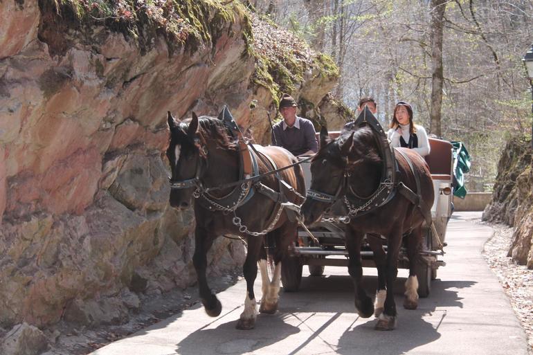 Но поняв как высоко находится замок, гости решили не лезть так высоко а посетить стоящий по другую сторону (и значительно ниже) замок родителей Людовика - Хоэшвангау, где он вырос и провёл своё детство. Он не менее интересен, а в плане житья-бытья представляет большую историческую ценность, поскольку был жилым в отличии от Нойшванштайна. Ведь Людовик даже не успел увидеть своё любимое творение в оконченом виде.