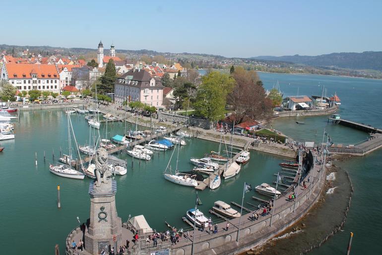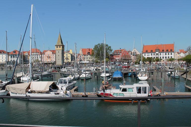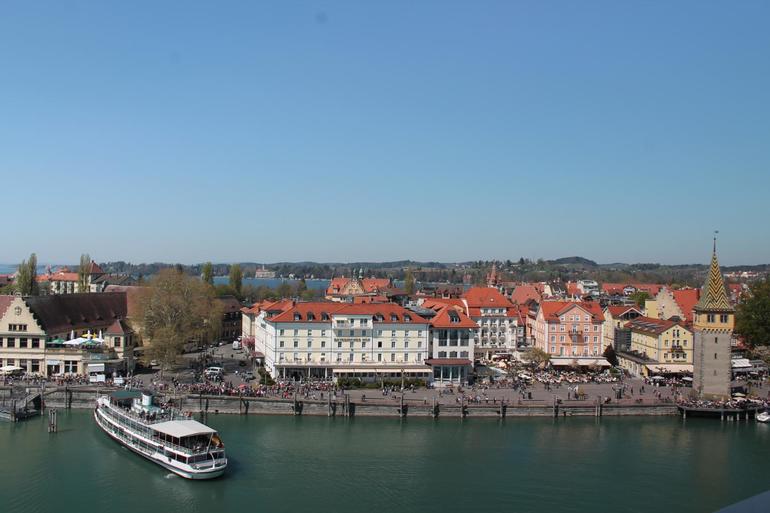 В субботу с утра, основательно подкрепившись мы взяли курс на Боденское озеро, в Линдау. Это место тоже является "центром паломничества" наших гостей, поскольку именно там можно всего за каких-то 30-40 минут пересечь озеро и погулять по Швейцарии, а уже через 20 минут оказаться в Австрии а оттуда вернутся снова в Германию.А можно вообще никуда не плыть, а пройтись по старым улочкам Линдау. Городок этот весьма старый и упоминается ещё в летописях 882 года..Старая часть города находится на острове, который соеденён с материком мостом. Главными украшениями гавани Линдау являются 33-метровый Новый маяк и мраморный Баварский лев. Больше писать ничего не буду, просто покажу фото