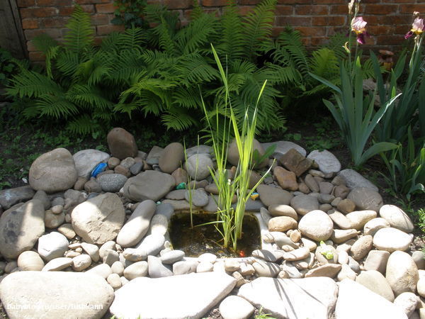 Так хочу прудик! Уже мужу распечатала некоторые идеи - мне с покрышкой автомобильной понравился. С раковиной не видела еще. Клево!!! А камыш вы сами садили? Где брали?
